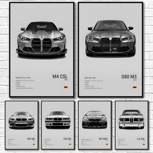 Famous Classic Latest Sports Car F80 M3 M4 M5 E36 EVO 3.0CSL B-BMW Poster Home Living Room Wall Art Garage Room Decor
